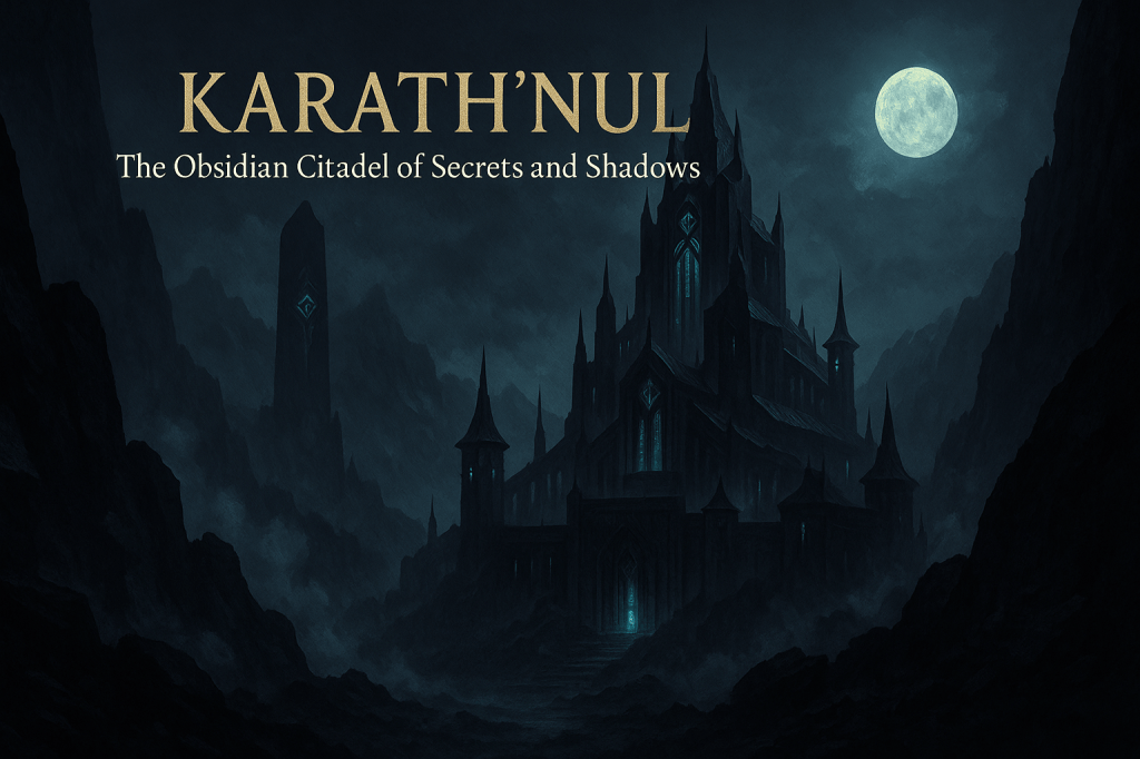 Karath’Nul lies carved into the cliffs of the Black Ridge Mountains, where light seldom reaches and obsidian flows like frozen night. The region is both a citadel and a vast subterranean network, blending fortress, temple, and city.
