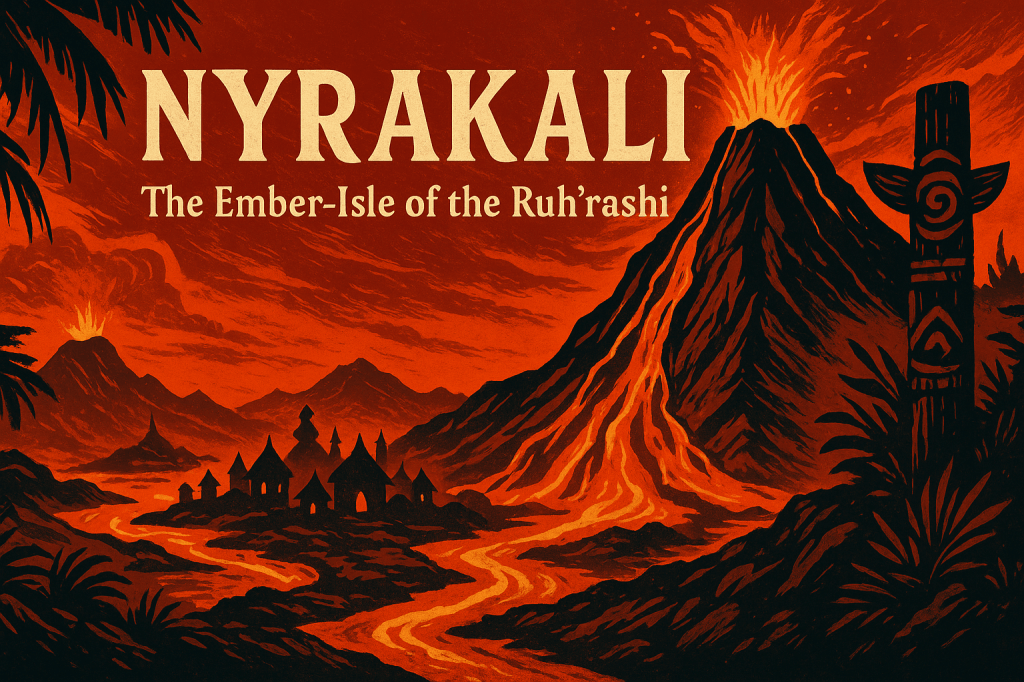 Nyrakali, their homeland, is an island forged by ancient volcanic upheaval, where ash-choked jungles meet obsidian cliffs, and glowing rivers cut through jungle and dust.